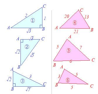 しかし,右側に描いた桃色の三角形は「直角三角形ではない」ので,辺の長さの比がそのままで三角比にはなりません.